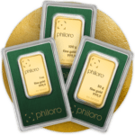 Die Rohlinge werden unter hohem Druck geprägt. Dabei entstehen die charakteristischen Oberflächen und Designs der Barren. Nach der Prägung erfolgt die Laserkennzeichnung sowie die Verpackung inklusive Zertifikat.